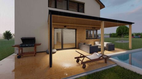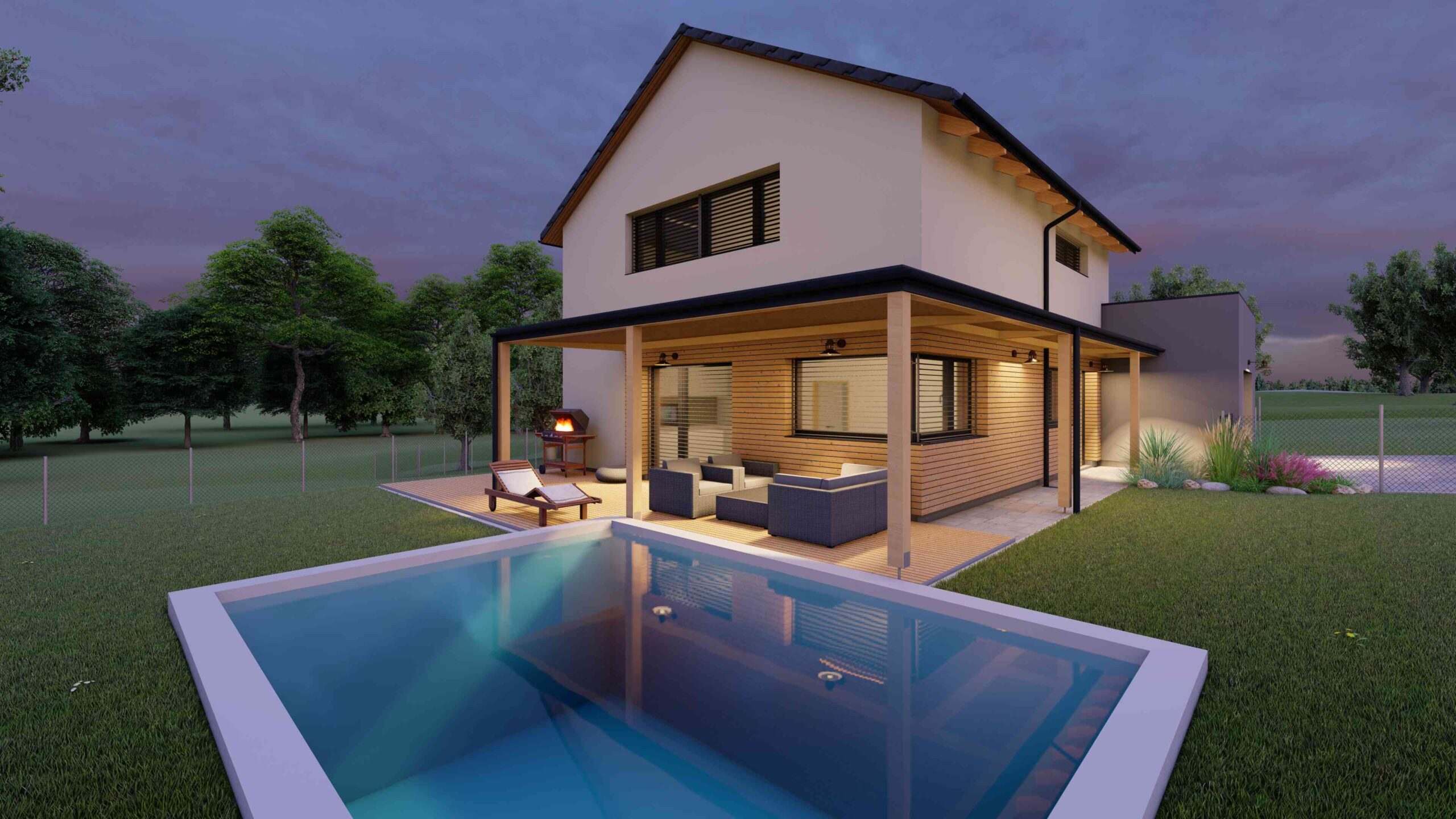 Objekt RD je na pozemek osazen do středu parcely a k východní hranici parcely, zbylá část pozemku bude využita jako zahrada případně zpevněná plocha zatravňovací dlaždice-vjezd, zámková dlažba, okapový chodník a terasa. Rodinný dům je řešený jako samostatně stojící objekt, ke kterému bude z východní strany přistavěna jednopodlažní garáž pro jeden automobil. Rodinný dům svým dispozičním řešením uspokojí nároky na bydlení 4-členné rodiny. Dům je dvoupodlažní, zastřešen sedlovou střechou se sklonem 30° a je nepodsklepen. Hlavní hmota RD je ve tvaru kvádru orientovaného kratší stranou s východní katastrální hranicí. RD je zastřešen krytinou z keramické pálené tašky. Garáž je zastřešena plochou
