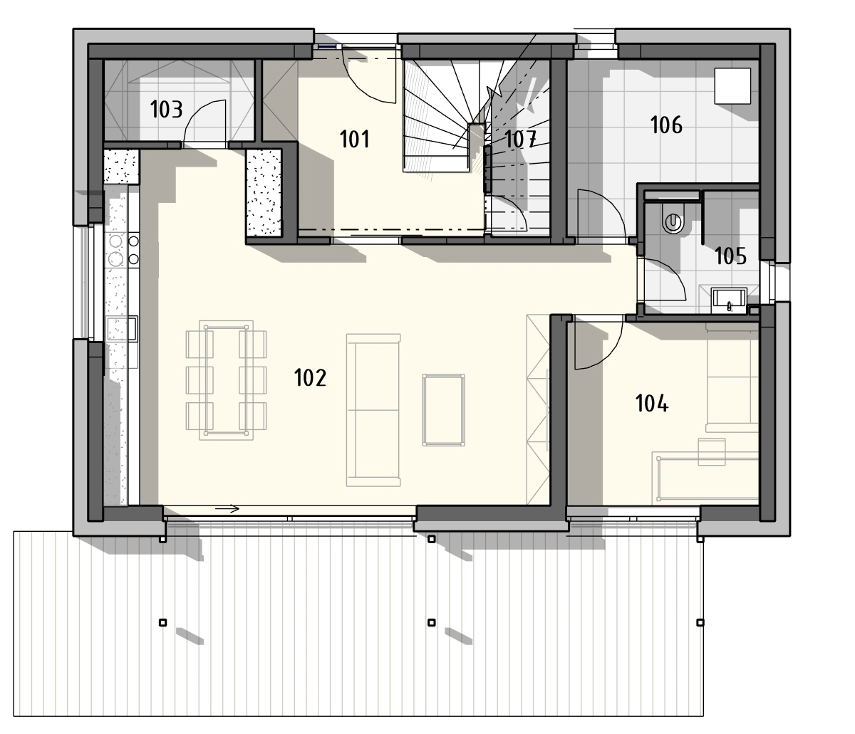 102-Obývací pokoj + KK s jídelnou | 39,2 m2 |