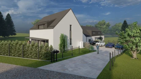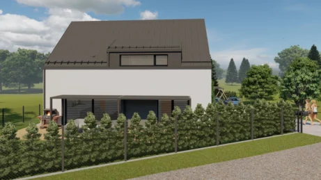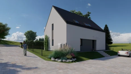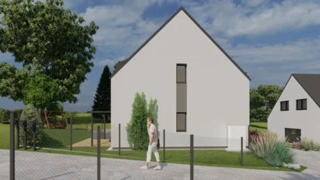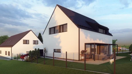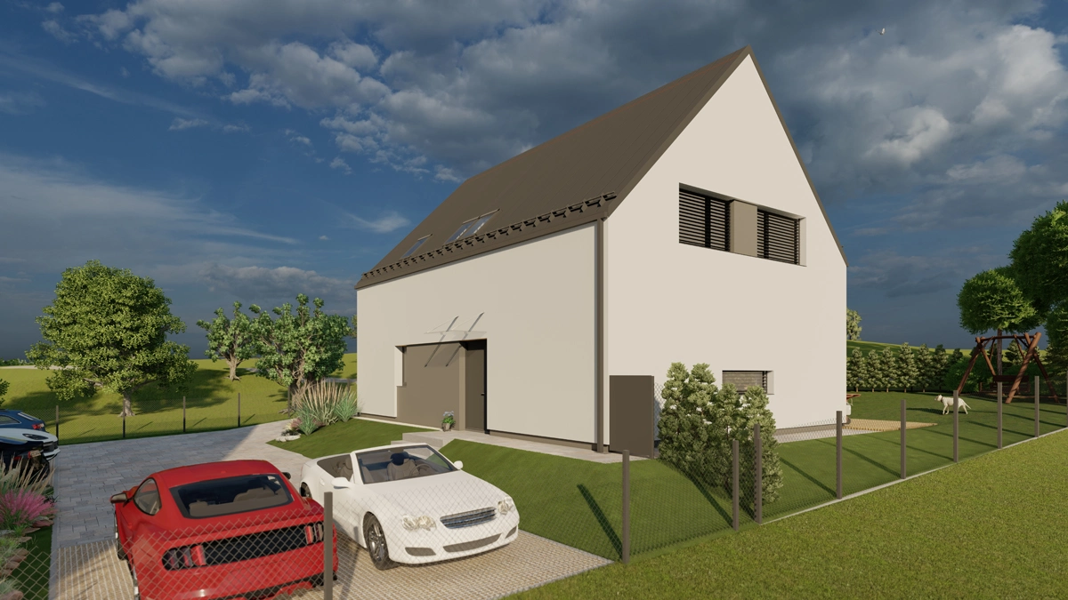 Jedná se o samostatně stojící dům s jedním bytem, řešený jako jednopodlažní objekt s obytným podkrovím. Díky tradiční sedlové střeše se sklonem 45° přirozeně zapadá do venkovského charakteru okolí, zároveň však nabízí současné standardy bydlení – jak v konstrukci, tak v použitých materiálech.