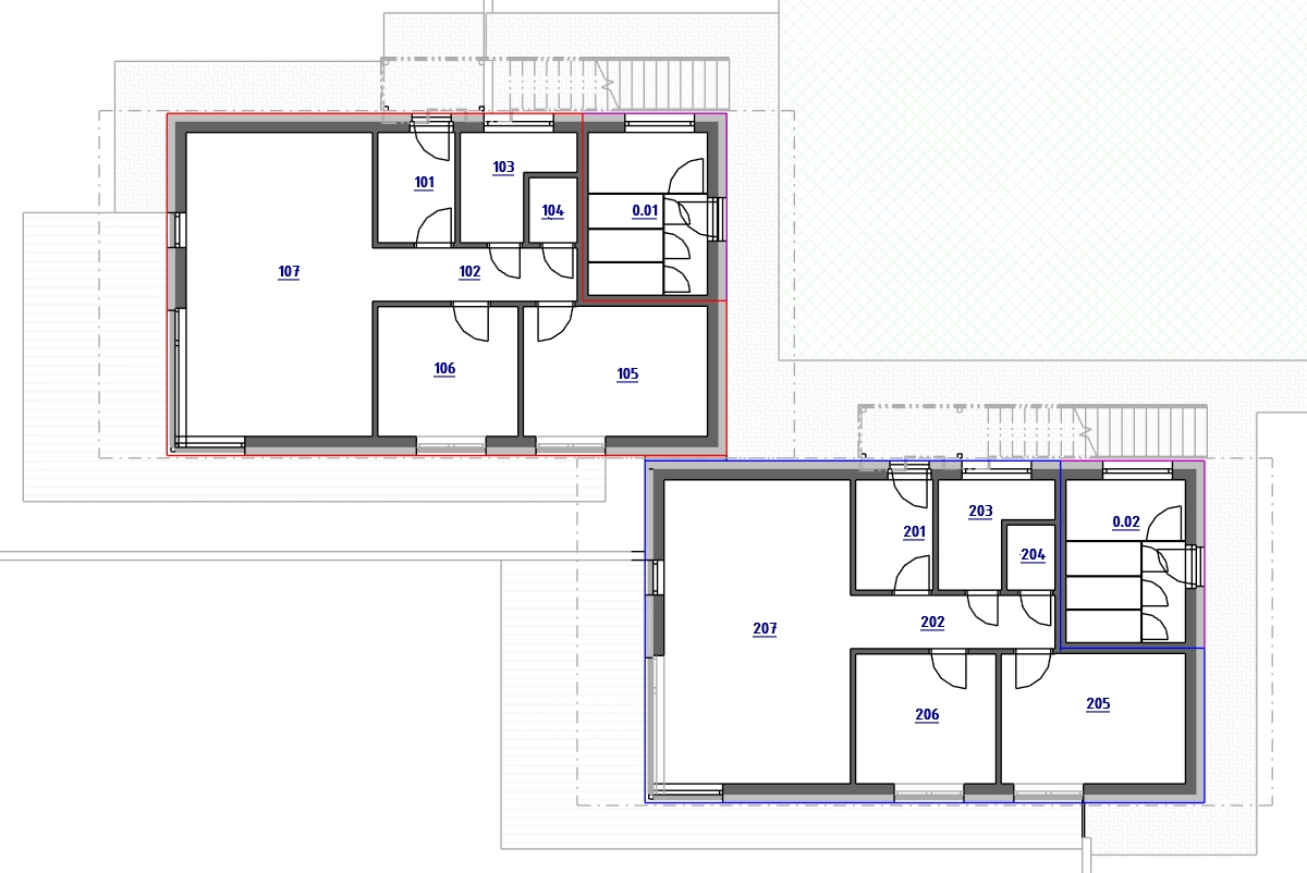 V rámci našeho projektu v severní části města Kopřivnice vznikl moderní dvojdomek se šesti samostatnými bytovými jednotkami, které spojují komfort bydlení v rodinném domě s výhodami funkční architekturyúsporného provozu. Každý z dvojdomů obsahuje tři samostatné bytové jednotky, celkem tedy projekt nabízí šest plnohodnotných bytů určených pro jednotlivce i rodiny.