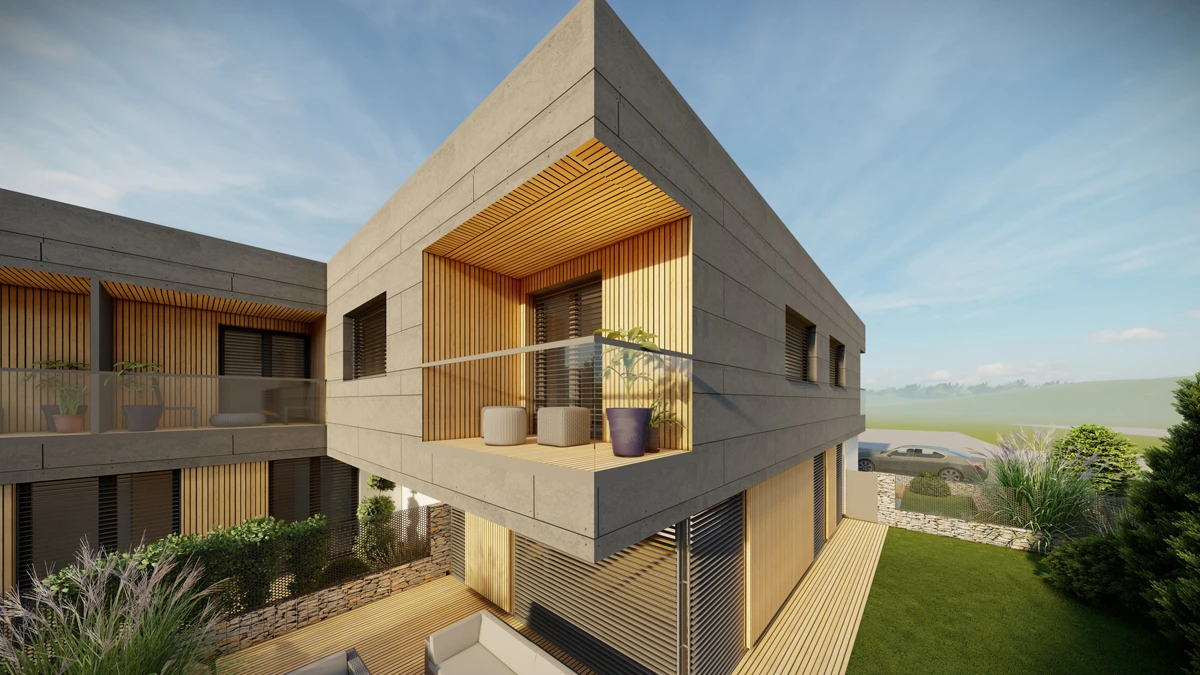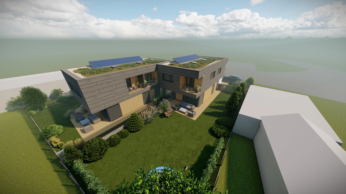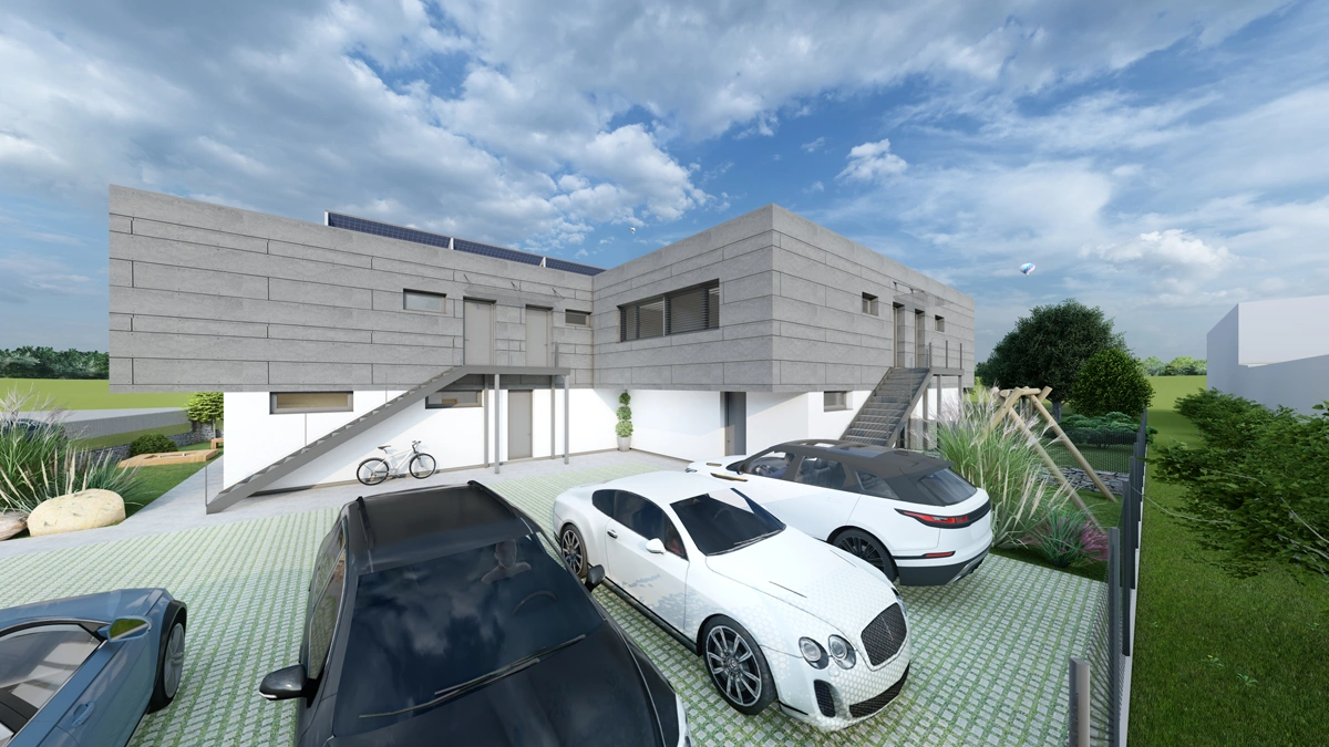 V rámci našeho projektu v severní části města Kopřivnice vznikl moderní dvojdomek se šesti samostatnými bytovými jednotkami, které spojují komfort bydlení v rodinném domě s výhodami funkční architekturyúsporného provozu. Každý z dvojdomů obsahuje tři samostatné bytové jednotky, celkem tedy projekt nabízí šest plnohodnotných bytů určených pro jednotlivce i rodiny.