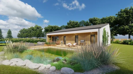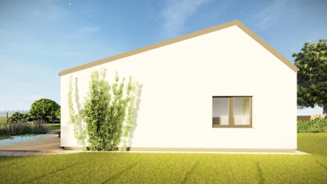 Rodinný dům je navržen jako jednopodlažní nepodsklepený objekt se sedlovou střechou o rozdílných sklonech (15°/40°). Dispozice je přehledná a praktická – s důrazem na komfort každodenního užívání pro čtyřčlennou domácnost.