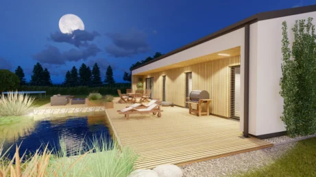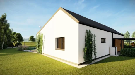 Architektura domu je střídmá, funkční a vychází z proporcí klasického venkovského bydlení, zároveň ale reaguje na současné nároky na nízkoenergetické a technicky kvalitní řešení. Dům je zateplen kontaktním systémem ETICS, výplně otvorů tvoří izolační trojskla v plastových nebo hliníkových rámech, a konstrukce je postavena na osvědčených materiálech – od pórobetonu přes dřevěný krov až po betonové základy.