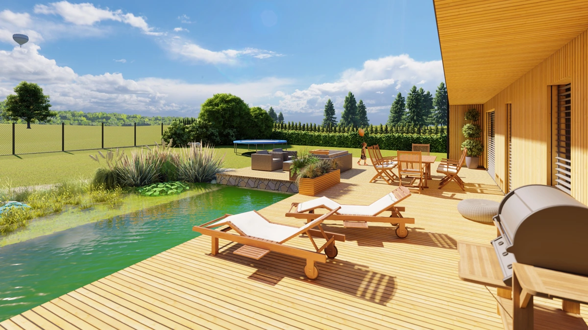 Celý objekt je situován na rovinatém pozemku o výměře 1 013 m², který umožňuje pohodlný přístup, přirozené oslunění a dostatek prostoru pro zahradu. Pozemek je napojen na přilehlou účelovou komunikaci ze severní strany.