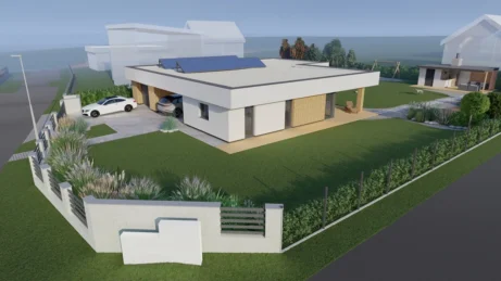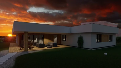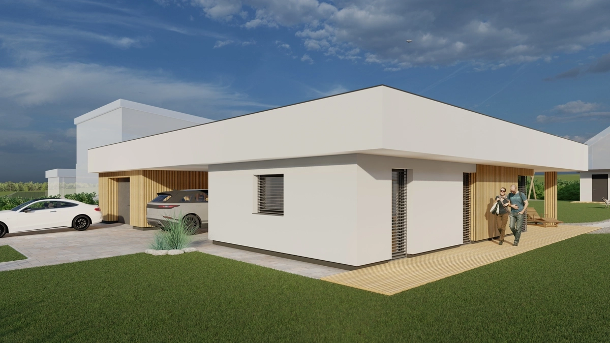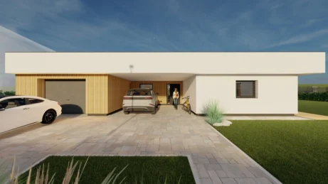 Moderní jednopodlažní dům s garáží a krytým stáním