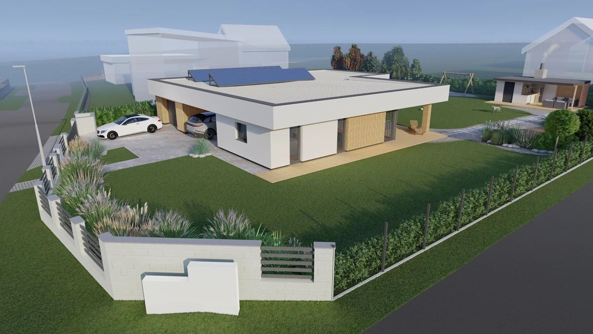 Zastavěná plocha činí 283,13 m², užitná plocha 170,5 m² a výška objektu nepřesahuje 3,7 m. Dům tak zapadá do okolní zástavby rodinných domů. Díky promyšlenému řešení stínění, umístění obytných místností a dostatečnému oslunění je tento dům ideální volbou pro ty, kdo hledají moderní a pohodlné bydlení bez kompromisů.
