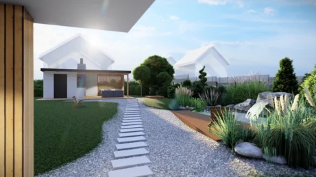 Na prostorném pozemku o výměře 1362 m² v klidné části města Příbor vzniká novostavba rodinného domu s plochou střechou, jejíž moderní pojetí propojuje obytný prostor a garáž do jedné kompaktní hmoty. Architektonický návrh domu ve tvaru písmene „Z“ vytváří přirozené členění na společenskou a soukromou část, přičemž fasáda je otevřena směrem do zahrady s krytou terasou.