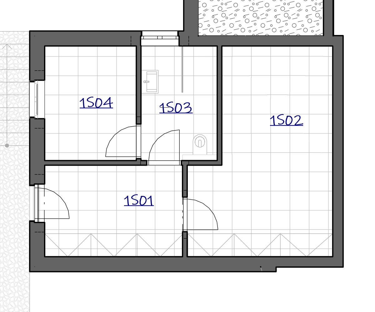 Suterén je určen pro zázemí – technickou místnost, koupelnu a budoucí saunu.