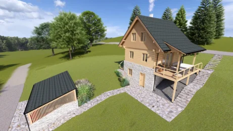 Tento dům je navržen pro ty, kteří hledají spojení přírodního materiálu, klidného místa a moderního způsobu života. Výrazná architektura s roubenou konstrukcí, promyšlené rozvržení prostor a využití terénu dělají z tohoto domu výjimečné místo pro život – v přírodě, ale s veškerým komfortem.